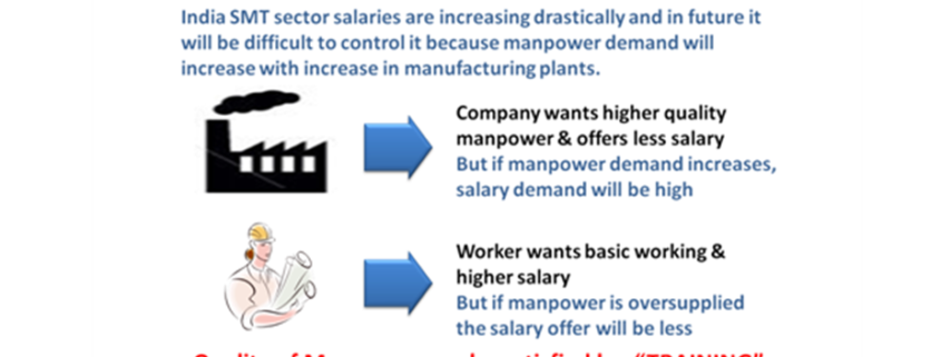 Recently we observed the manpower shortage in SMT sector at Pune area. Several companies are now hiring but due to manpower shortage the salary demand by experienced manpower has been increased drastically. The persons with 7~8 years experience are demanding for double salary as compare to what they were getting 2 years back.